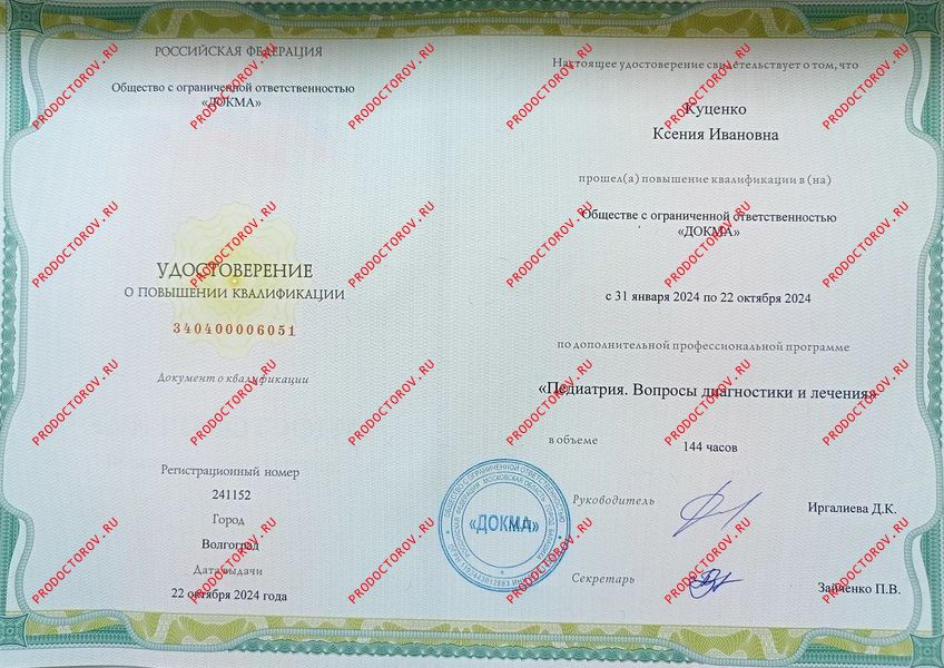 Куценко Ксения Ивановна, Белгород: педиатр, 21 отзыв пациентов, места работы, стаж 2 года, запись на приём от 3000 рублей.