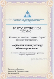 Наркологический центр «Точка трезвости» города Брянска занимается лечением алкоголизма и сопутствующих заболеваний (неврозы, депрессия и пр.). В штате учреждения ведут прием высококвалифицированные специалисты, которые используют в своей практике новейшие сертифицированные методики. Врачи в индивидуальном порядке подходят к лечению пациентов, оказывают помощь не только в клинике, но и в домашних условиях. Индивидуальный курс лечения, подбираемый в наркологическом центре «Точка трезвости», зависит от психологического и физического состояния клиента, стадии недуга. Специалисты оказывают поддержку не только пациенту, но и членам его семьи.