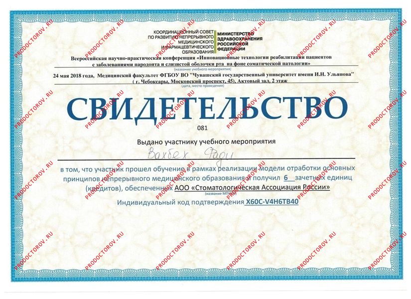 “Под руководством этого доктора в ординатуре я научилась всем премудростям стоматологии. В те годы каждый день видела как он внимательно относится к пациентам, активно борется за их здоровье и искренне старается помочь им. Сама отправляла к нему сложных пациентов. Советуюсь с ним в непонятных случаях.”