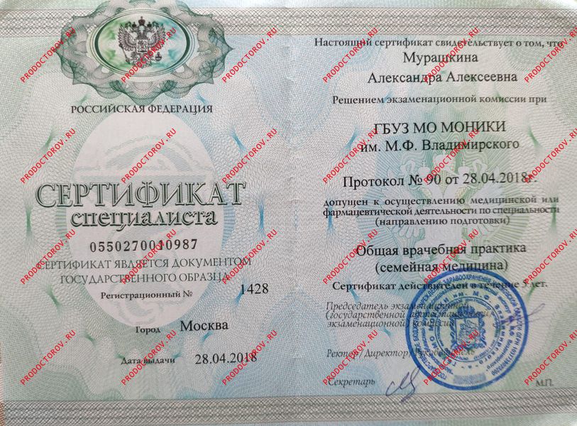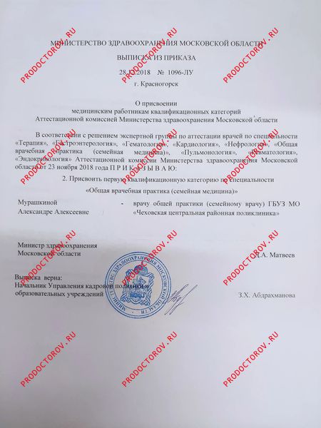 Мурашкина Александра Алексеевна, Чехов: врач общей практики (семейный врач), 203 отзыва пациентов, места работы, высшая категория, стаж 14 лет.