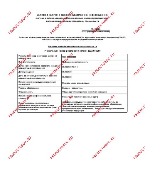 Мурашкина А. А. рекомендует как травматолога (28.01.2023)