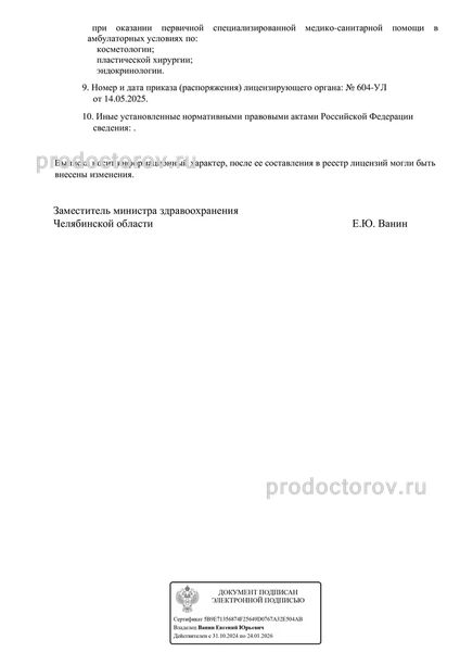 Благодарим вас за выбор нашей клиники и надеемся на дальнейшее сотрудничество. Если у вас появятся какие-либо вопросы или потребность в повторном осмотре, пожалуйста, не стесняйтесь связаться с нами.