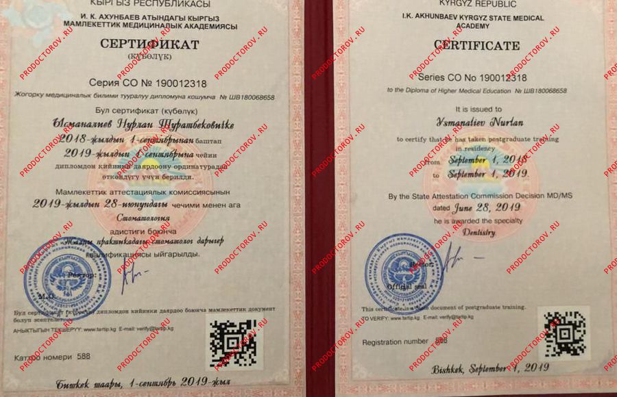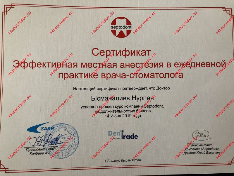 Ысманалиев Н. Т. рекомендует как стоматолога-имплантолога (19.04.2022)