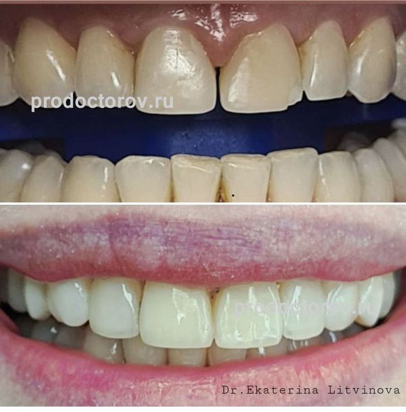 Я после брекет лечения и зубы мои были в ужасном состоянии. История очень непростая. Но как я могу поделиться хоть с кем-то, когда я стеснялся даже рот открыть не то чтобы улыбаться. Начались очень долгие поиски поиски кто бы мне мог посочь спасти мои зубы и что мои зубы были или стали как прежде белые. Они были очень кривые сейчас уже после брекетолечения все хорошо но желтые были. И вот правильно говорят, что кто ищет тот всегда найдёт. Начались поиски того самого врача. Врача моей мечты. После нашего знакомства я теперь не представляю ни одного врача рядом. А тем более я нашёл где можно точно отбелить зубы. Не просто почистить пастой знаете, если вы пытались отбелить зубы. Есть разные оказывается способы. Наконец-то для меня нашли время, пришлось конечно подождать чтобы попасть к Литвиновой Екатерине Семеновне, но я это сделал. Теперь у меня белые зубы, а счастью нет предела. Теперь всегда отбеливать зубы только к Литвиновой Екатерине Семеновне!
