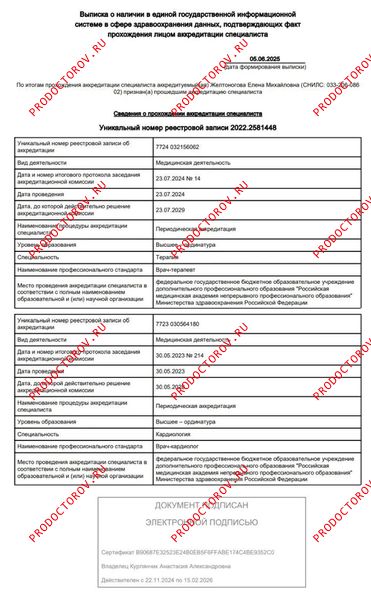 Врач УЗИ Щетнева О. А. рекомендует как терапевта (05.06.2025)