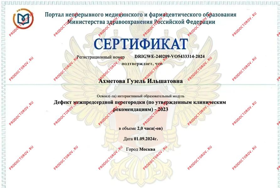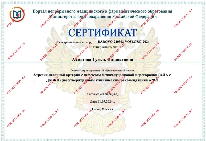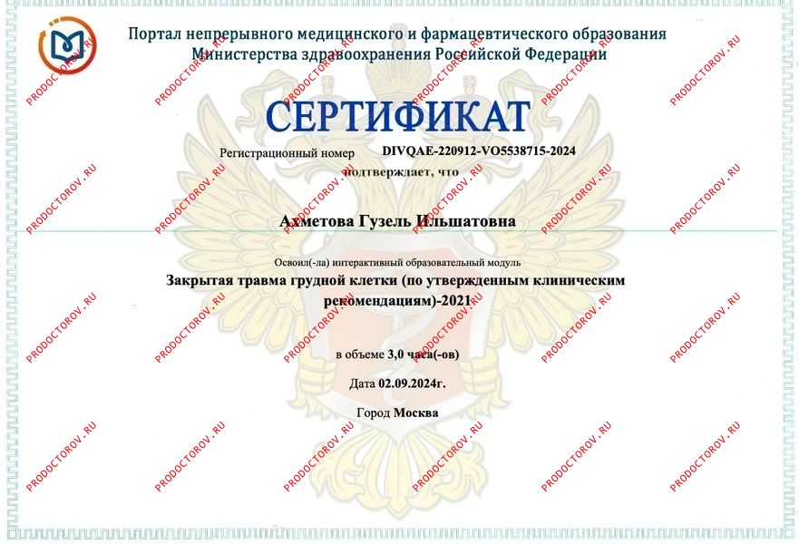 Почётная грамота Управления здравоохранения Министерства здравоохранения Республики Татарстан (г. Казань) — за большой личный вклад и активное участие в проведении акции «Прикоснись к сердцу ребёнка».