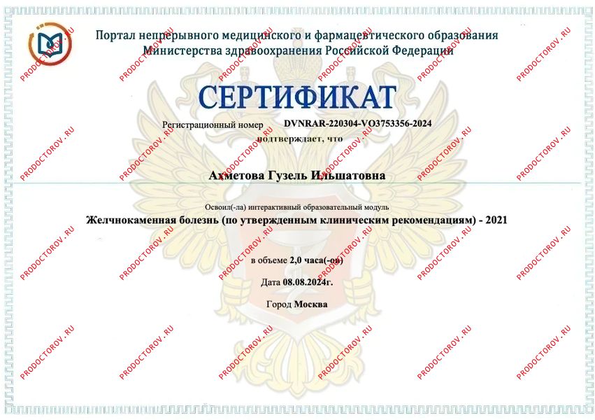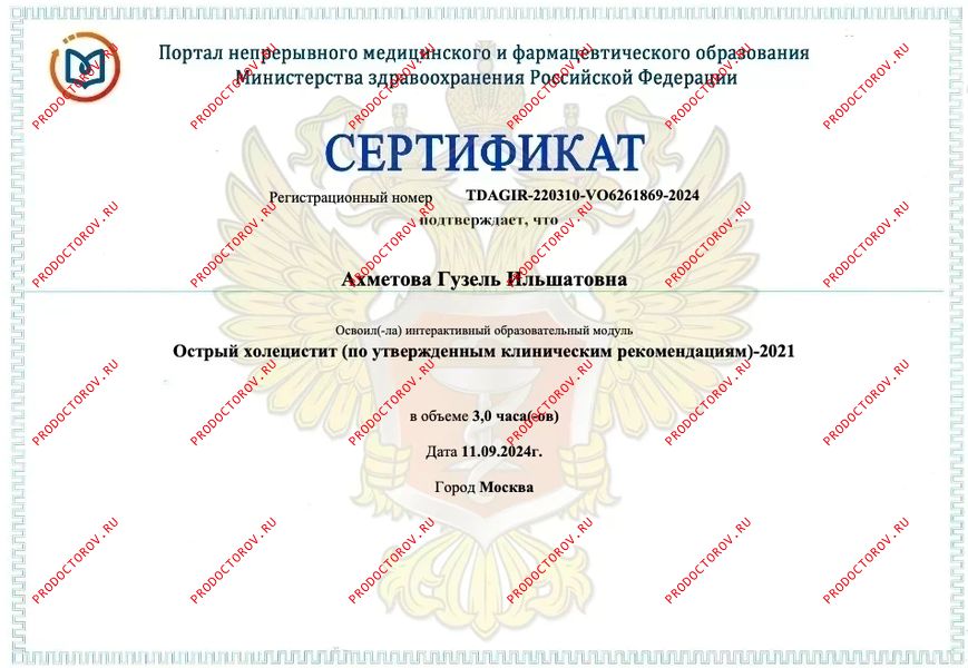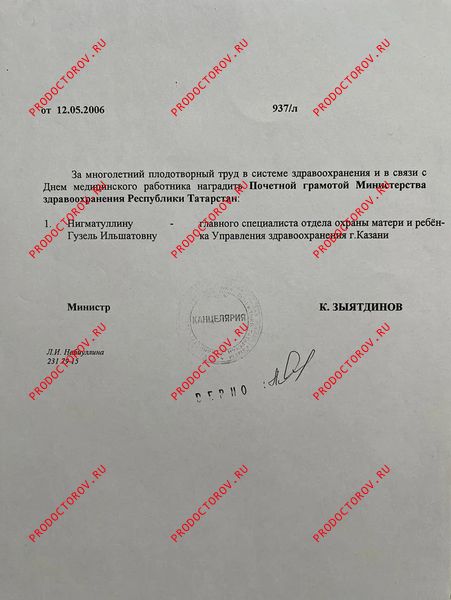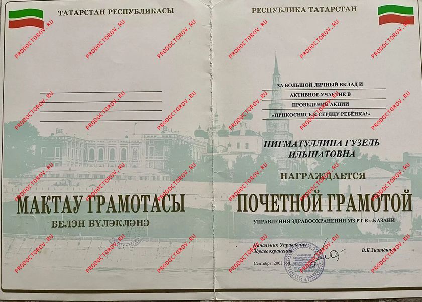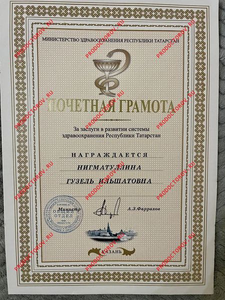 Почётная грамота Министерства здравоохранения Республики Татарстан — за многолетний плодотворный труд в системе здравоохранения и в связи с Днём медицинского работника.
