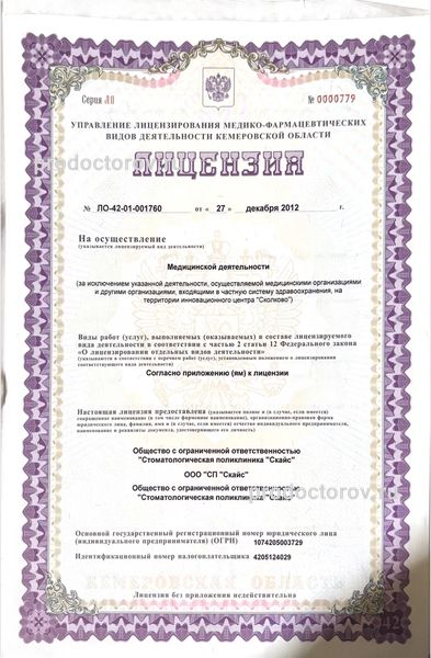 Стоматология «Скайс», Кемерово: 10 врачей, 13 отзывов о клинике и ее врачах, цены от 95 до 50000 руб., запись на приём +7 903 944-87-37, официальный сайт, адрес - Кемерово, ул. Свободы, д. 13.