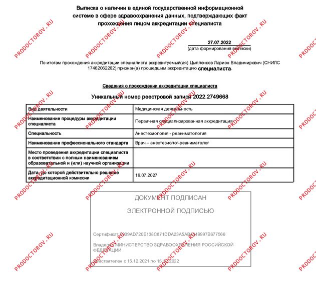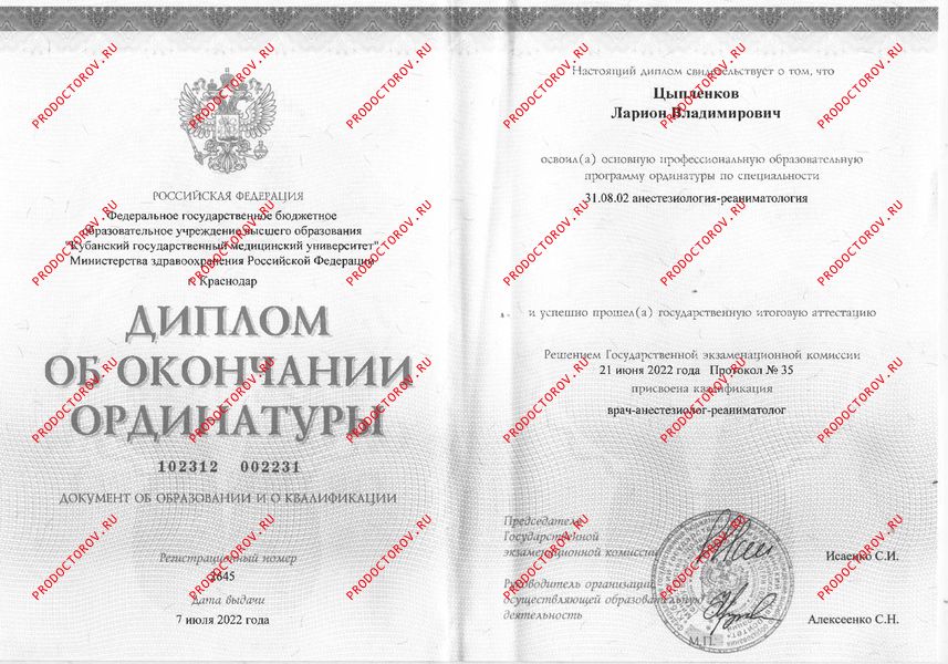 Цыпленков Ларион Владимирович, Краснодар: анестезиолог-реаниматолог, отзывы пациентов, места работы, стаж 6 лет.