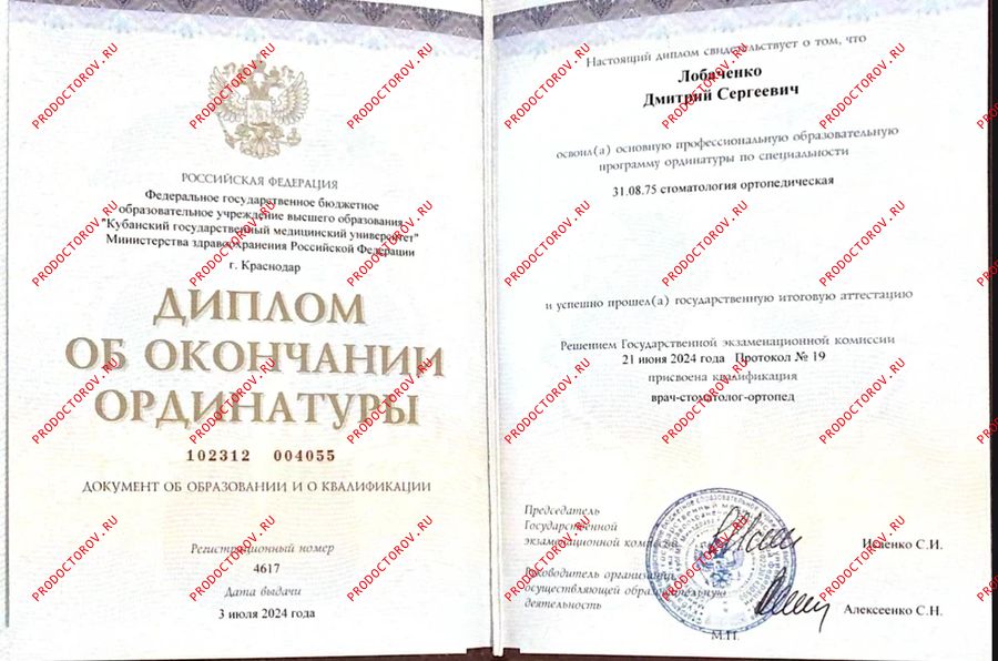 Лобаченко Д. С. рекомендует как стоматолога-ортопеда (13.05.2025)