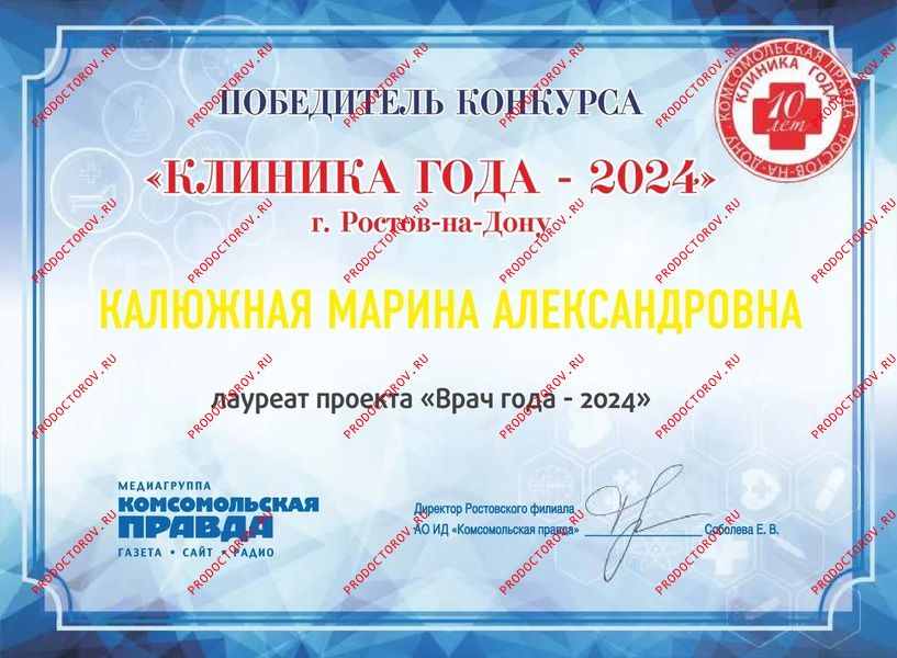 Калюжная Марина Александровна, Краснодар: нарколог, психиатр, 1 отзыв пациентов, места работы, стаж 16 лет, запись на приём ☎ +7 861 202-67-16.