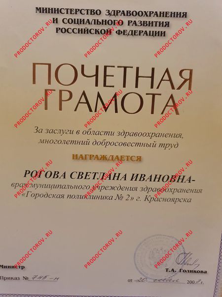 Рогова Светлана Ивановна, Красноярск: физиотерапевт, 40 отзывов пациентов, места работы, высшая категория, стаж 34 года, запись на приём ☎ +7 391 216-72-09.