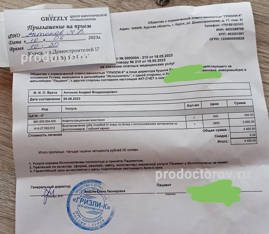 Здравствуйте! Благодарим за высокую оценку нашего доктора и клиники! Приглашаем продолжить плановое лечение. Будьте здоровы! С уважением, центр хирургической стоматологии "Grizzly"!