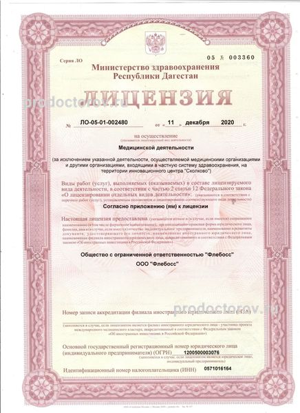 Клиника «Флебосс» располагается в городе Махачкале, на территории Республики Дагестан. Это высокотехнологичная медицинская организация, которая предлагает комплексный подход к диагностике и лечению варикозного заболевания и сопутствующих патологий. Свою медицинскую деятельность организация осуществляет в соответствии с лицензией от 11 декабря 2020 года.