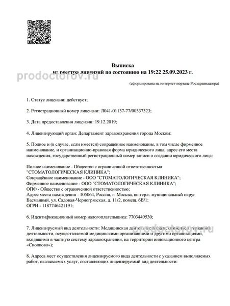 Да, и про остальной состав: все очень вежливые, предупредительные. Оборудование и оснащение, на мой взгляд, одно из самых современных. Цены тоже средние по Москве, несмотря на то, что это центр. Но повторюсь: качество исполнения и результат превосходные. Спасибо им за такую клинику!