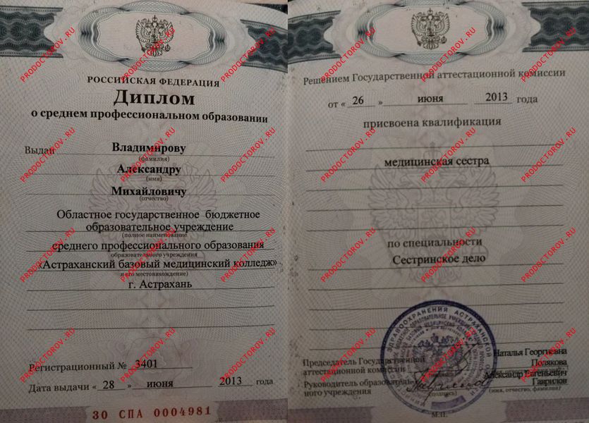 Среднее медицинское образование (медсестра, медбрат)