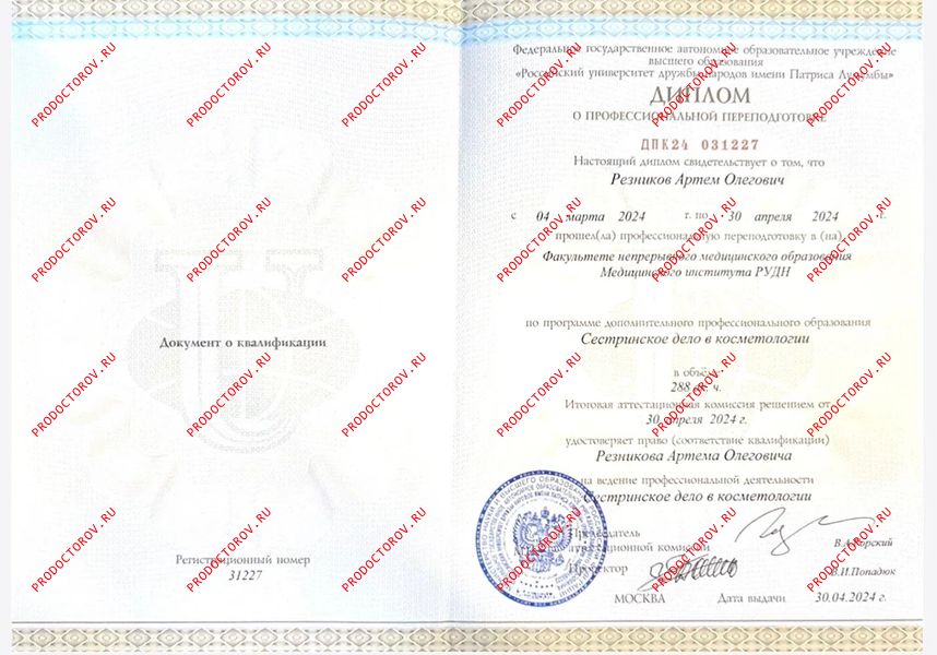«Сестринское дело в косметологии», «Первый профессиональный институт Эстетики»