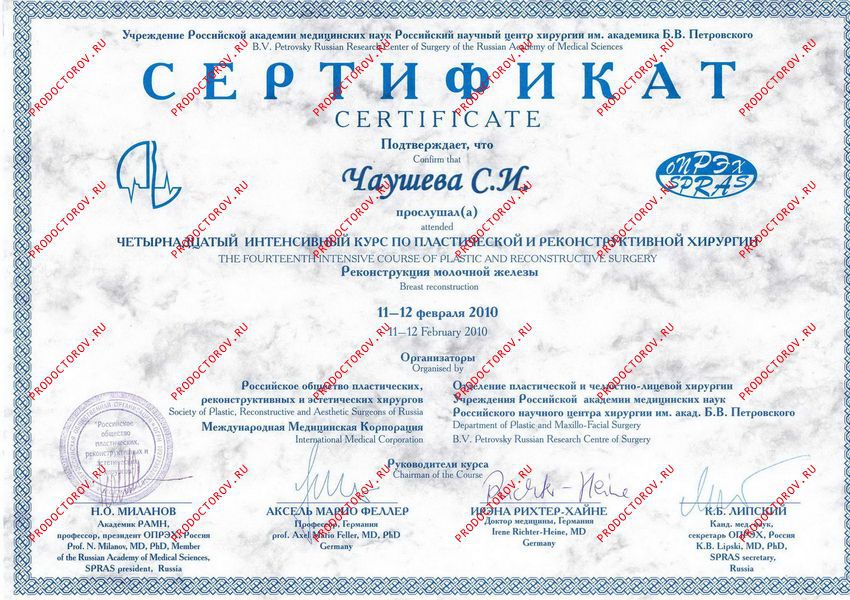 Чаушева Саният Исрафильевна, Москва: пластический хирург, 18 отзывов пациентов, места работы, кандидат наук, стаж 23 года.