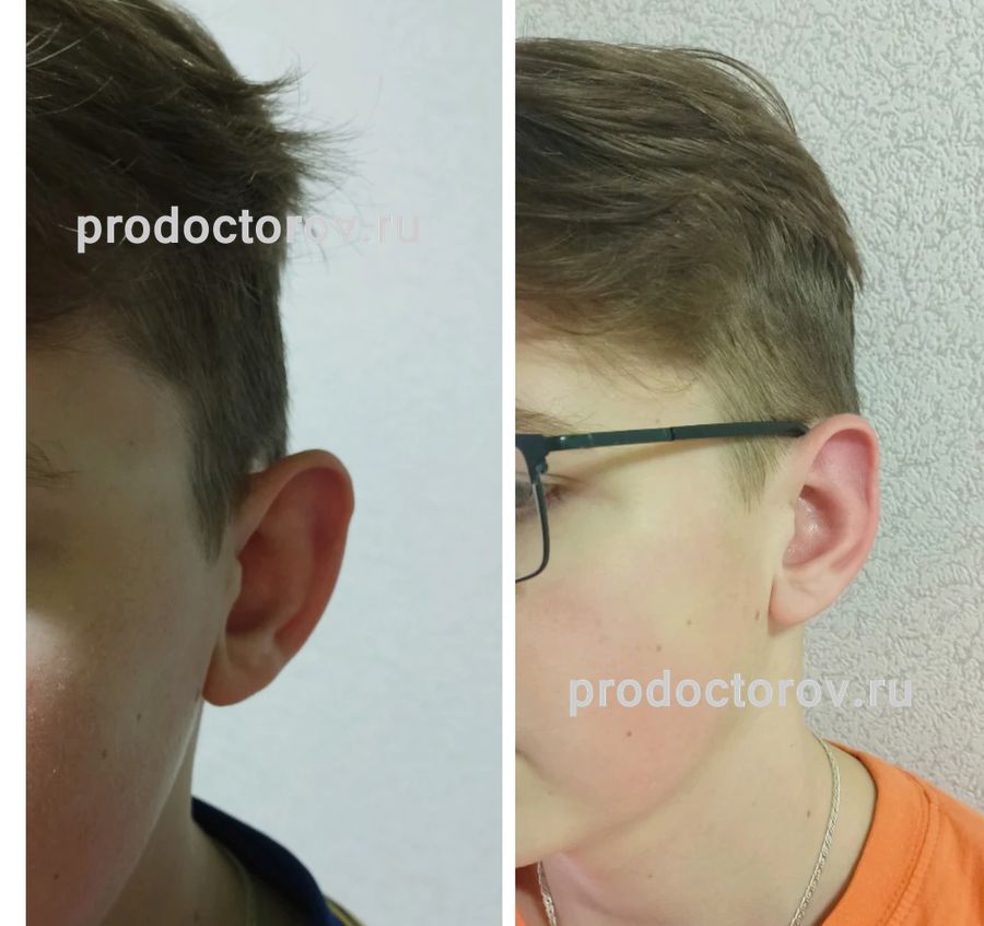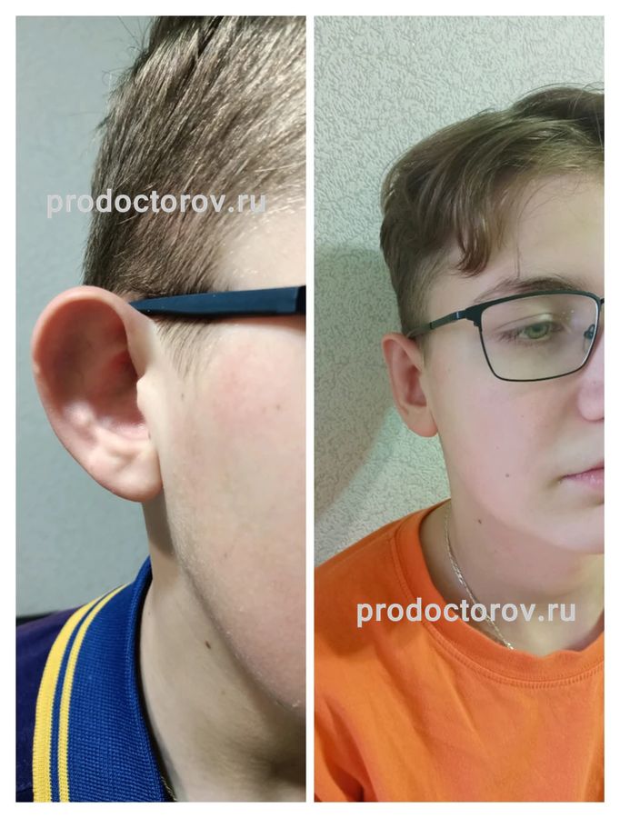 Обратились к Софье Сергеевне с сыном (15 лет). Жалобы - на оттопыренные (с рождения) ушки. На одном противозавиток не был сформирован совсем! Первая консультация была в конце июля. Операция - в конце сентября. Она выслушала все наши пожелания. Выбрали дату, и мы, с нетерпением, ждали этот день. Делали отопластику​ под наркозом, сын спал и ничего не понял, что произошло. Операция длилась примерно полтора часа. После персонал каждые 10 минут приходил, смотрел за самочувствием сына. Софья Сергеевна до и после операции все мне объяснила (про форму уха, про отеки, синяки). Результат операции я увидела сразу. На следующий день она сделала перевязку, показала сыну его новые ушки.