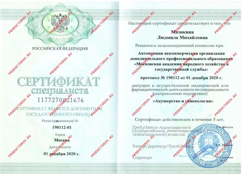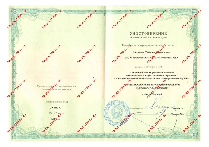 «Акушерство и гинекология», АНО ДПО «Московская академия народного хозяйства и государственной службы»
