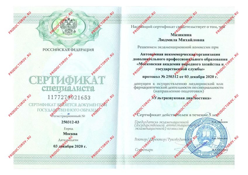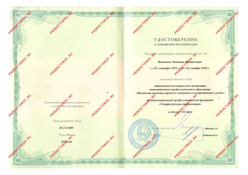 «Ультразвуковая диагностика», АНО ДПО «Московская академия народного хозяйства и государственной службы»