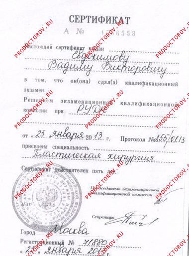 - 2013Московский государственный медико-стоматологический университет Евдокимова (пластическая хирургия)Повышение квалификации