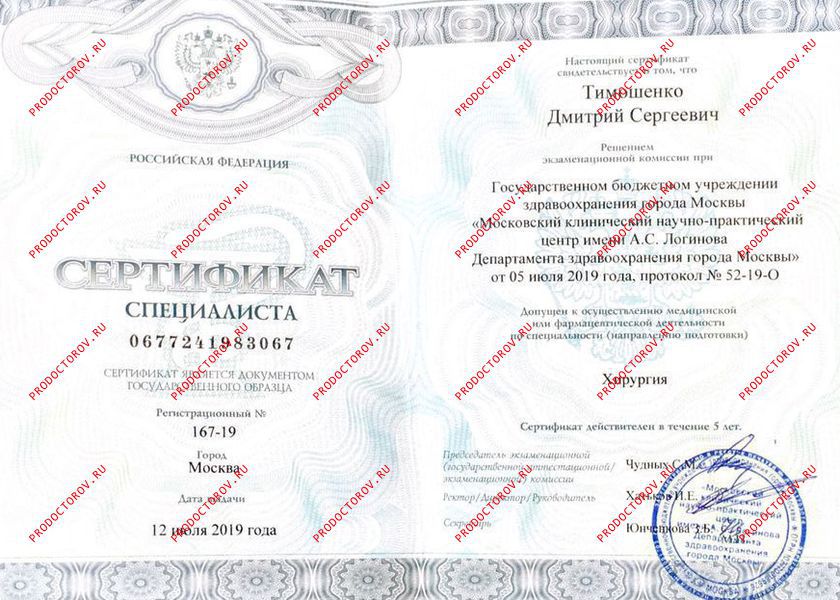 Тимошенко Дмитрий Сергеевич, Москва: хирург, 16 отзывов пациентов, места работы, стаж 9 лет.