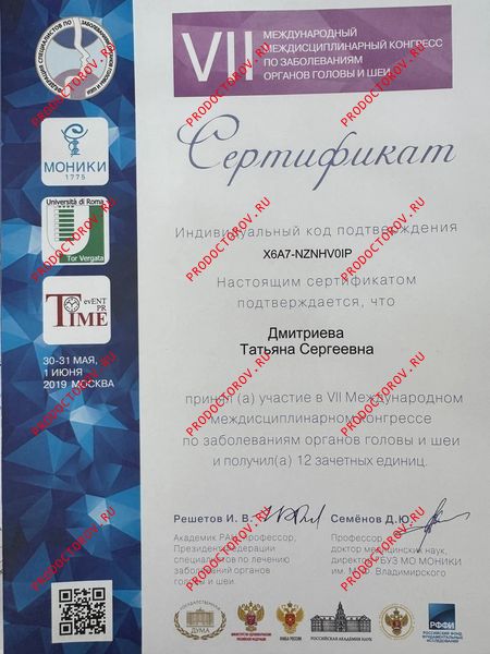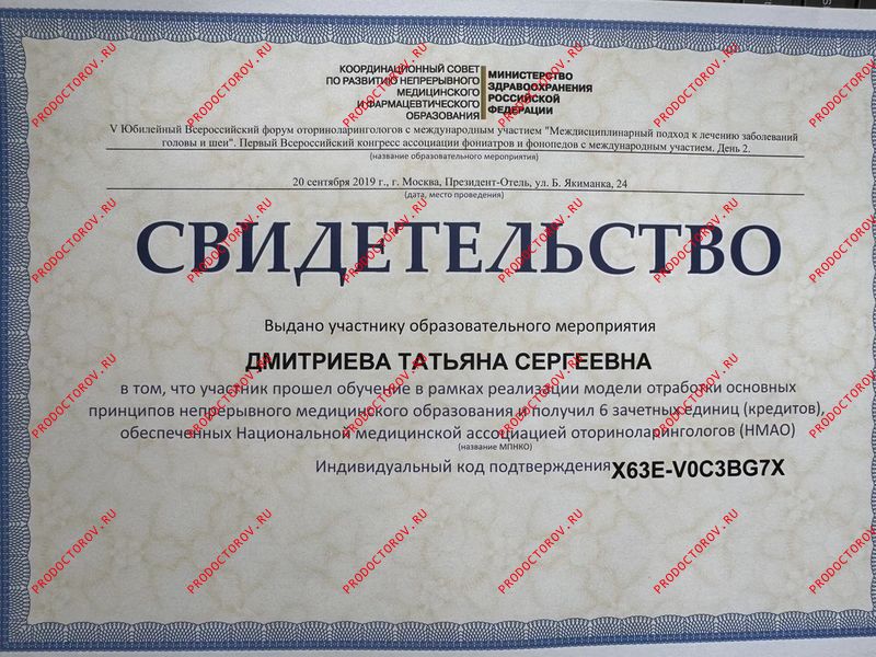 Дмитриева Татьяна Сергеевна, Москва: детский лор, 6 отзывов пациентов, места работы, стаж 9 лет.
