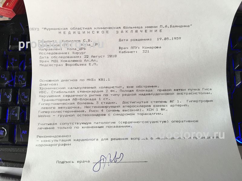 Иду, боюсь, резать надо, а тут: "Вы больной, сердечник (стенокардия​), делать не будем". Я специально выпросил направление в областную, где уровень оснащения повыше, в Коле пока не принимают планово, здоровье хорошее после реабилитации ЖКБ и опять ждите, когда по жизненной необходимости пожелтею, ну и все последствия. А пока всё хорошо, им не нужны больные пациенты (статистику портить).