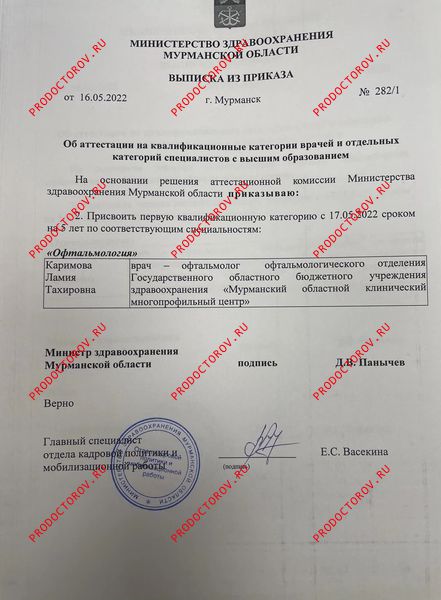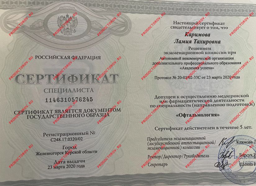 Каримова Ламия Тахировна, Мурманск: офтальмолог-хирург, 5 отзывов пациентов, места работы, 1 категория, стаж 13 лет.