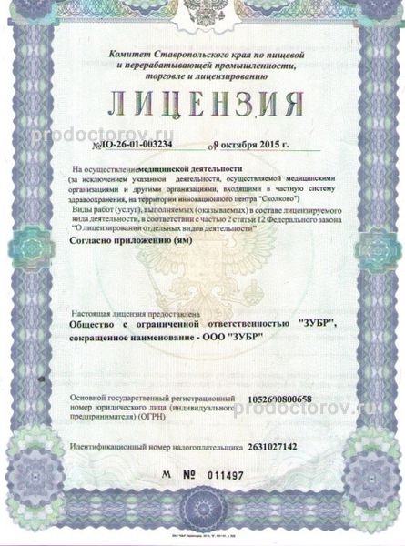 Стоматология «Зубр», Невинномысск: 7 врачей, 83 отзыва о клинике и ее врачах, цены от 120 до 85000 руб., запись на приём (961) 457-79-31, официальный сайт, адрес - Невинномысск, ул. Северная, д. 4а.