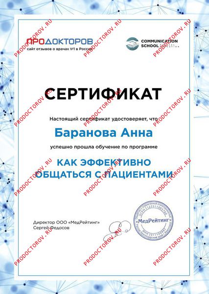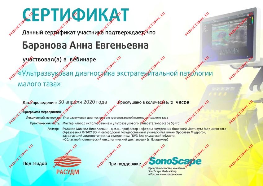“Хотел бы рекомендовать коллегу как прекрасного, опытного гинеколога и врача-УЗИ. Очень грамотные заключения по УЗИ Доплерометрии маточных артерий на стадии подготовки к беременности и ЭКО, 2й и 3й скрининги при беременности, УЗИ динамика регресса ретрохориальных и оболочечных гематом, совместно с моей терапией коагулопатий, тромбофилий, АФС. Заключения доктора всегда конкретны, корректны и помогают в совместной терапии.”