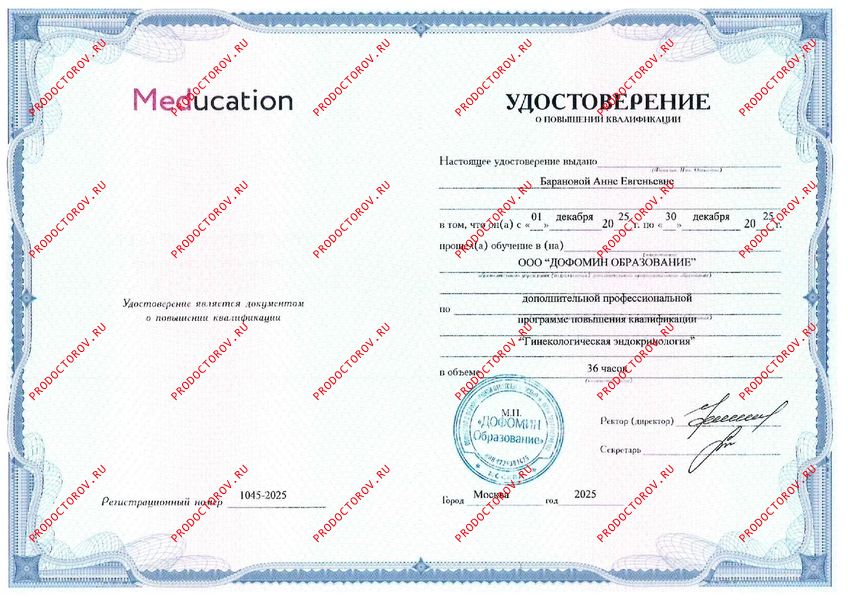 Гематолог Теребаев А. В. рекомендует как гинеколога (15.01.2025)