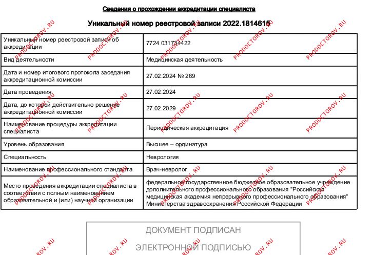 Пластический хирург Татаринцев С. Г. рекомендует как невролога (19.04.2023)