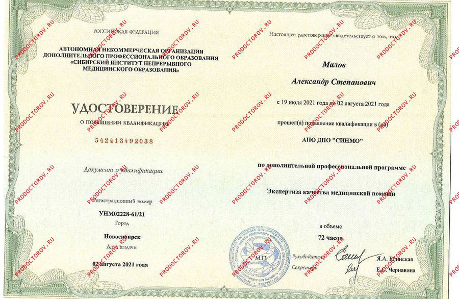 Малов Александр Степанович, Новосибирск: терапевт, 15 отзывов пациентов, места работы, стаж 8 лет, запись на приём ☎ +7 383 202-19-27.