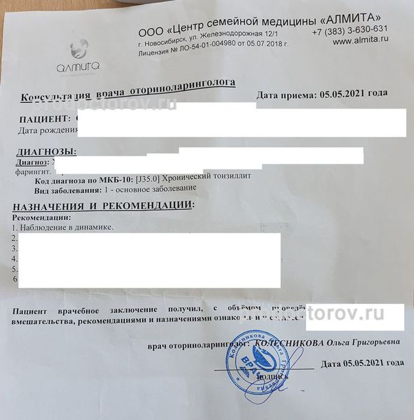 Сама процедура длилась 20 секунд, со слов дочери была безболезненна. После эндоскопии доктор все подробно объяснила и сделала адекватные назначения (а не вот эти 9 пунктов и 35 лекарств, которые ты обычно получаешь на выходе от педиатра или ЛОРа). В общем, очень понравился подход Ольги Григорьевны! И отдельно хочу отметить заботу медицинской сестры - они с доктором создали очень теплую атмосферу на приеме, так что дочь была спокойна и ушла довольная.