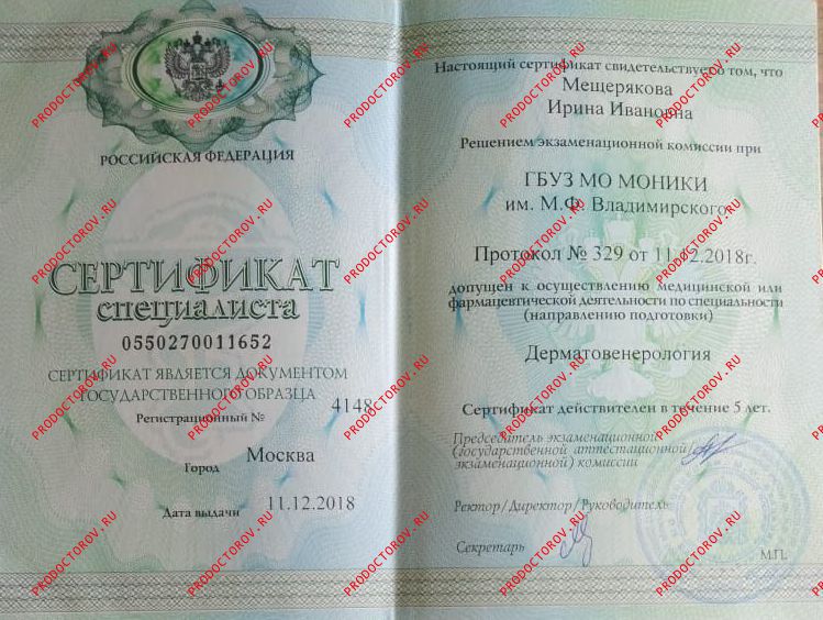 Гинеколог Швец Ф. В. рекомендует как дерматолога (13.05.2022)