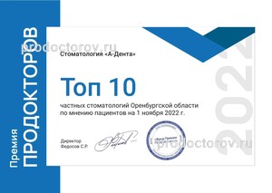 Стоматология «А-Дента», Оренбург: 5 врачей, 173 отзыва о клинике и ее врачах, цены от 60 до 36000 руб., телефон, официальный сайт, адрес - Оренбург, ул. Кима, д. 25.