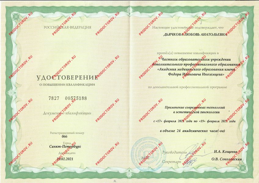 Прием (первичная консультация) врача гинеколога, детского гинеколога Дьячкова Л.А. (от 6 лет)