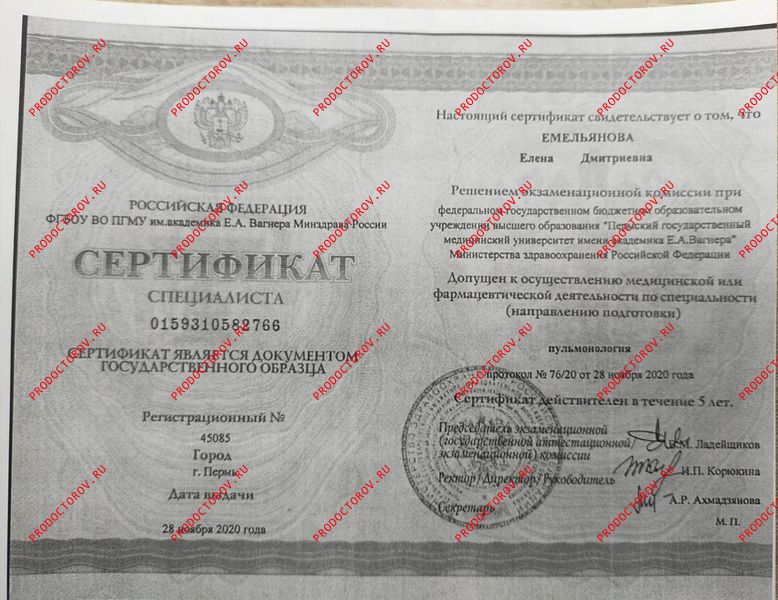 Емельянова Елена Дмитриевна, Пермь: пульмонолог, терапевт, 14 отзывов пациентов, места работы, стаж 31 год, запись на приём ☎ +7 342 254-93-54.