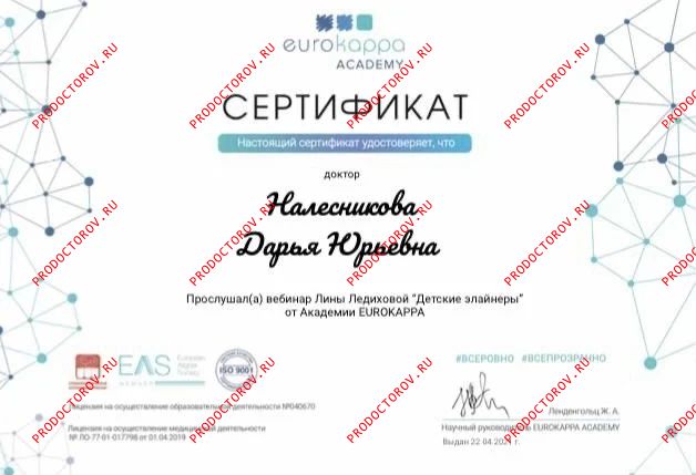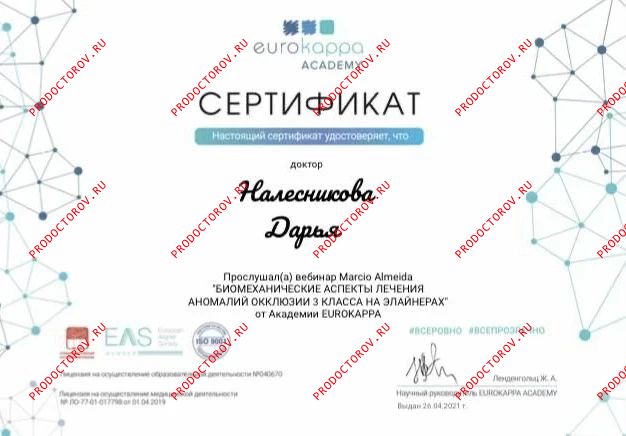 “Рекомендую Дарью Юрьевну всем, кому требуется исправление прикуса как в детском, так и взрослом возрасте. Это доктор который постоянно учится новому в избранной профессии, оттачивает навыки и стремится довести свою работу до совершенства.”