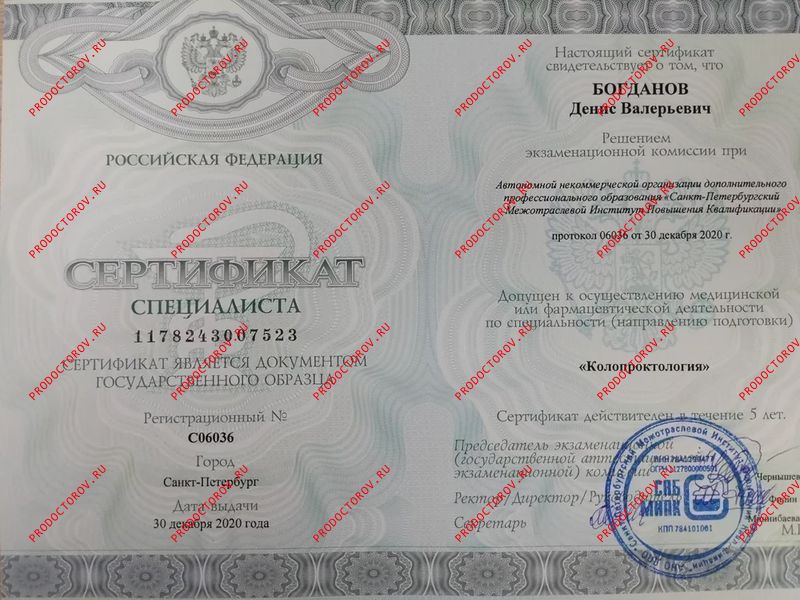 Проктолог (колопроктолог) Белый А. В. рекомендует как проктолога (30.01.2020)