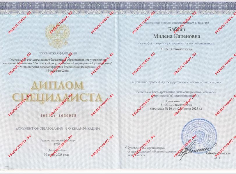Бабаян Милена Кареновна, Ростов-на-Дону: стоматолог, стоматолог-гигиенист, 2 отзыва пациентов, места работы, стаж меньше года, запись на приём ☎ +7 863 333-31-09.