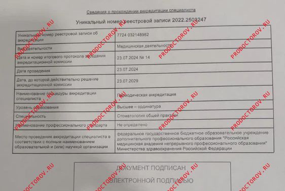 Данные в профиле лечения не подтверждены реальной практикой врача.