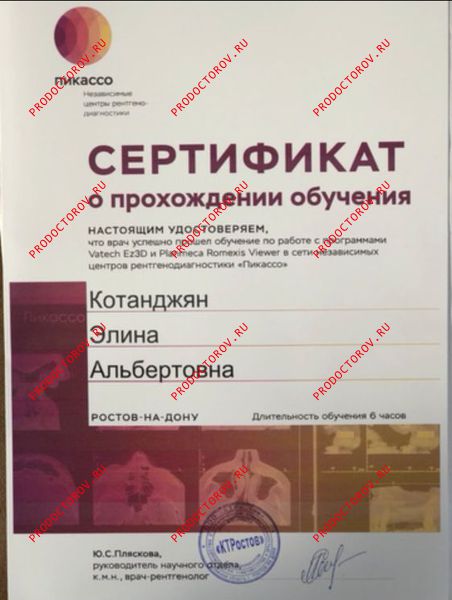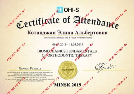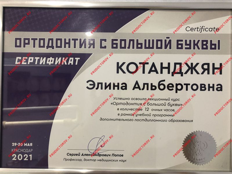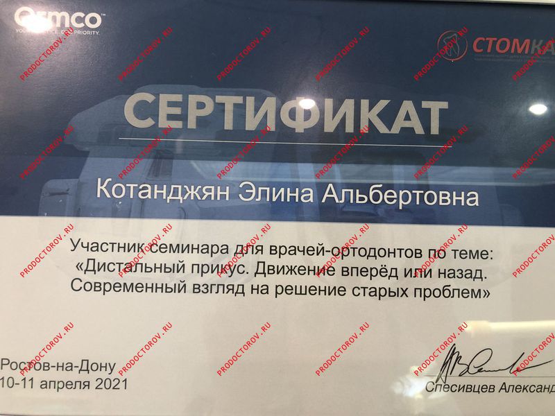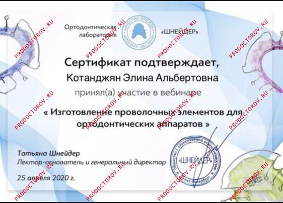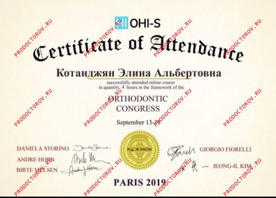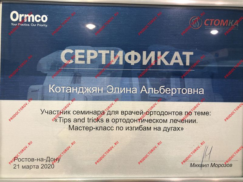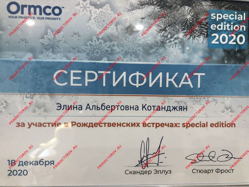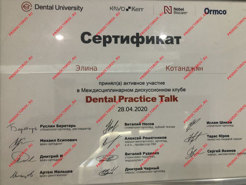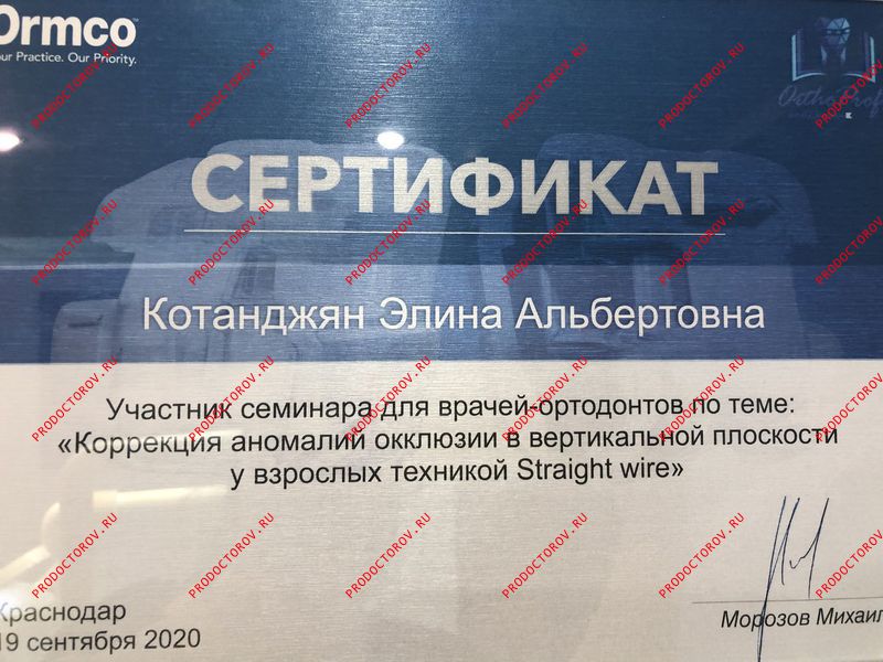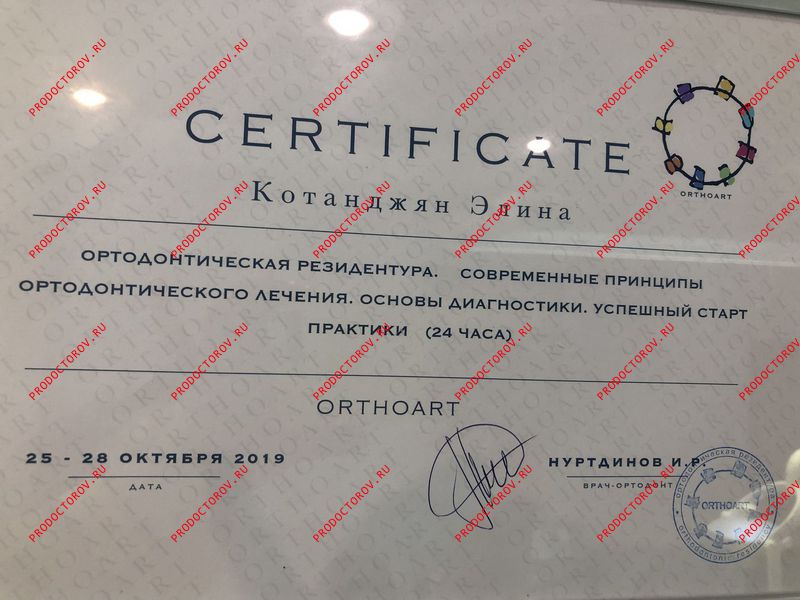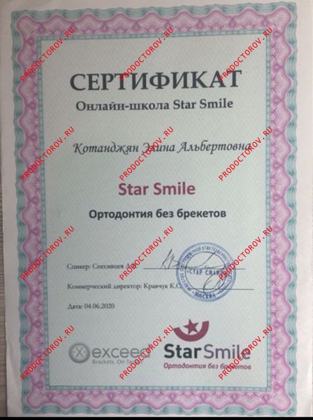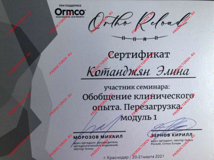 Котанджян Э. А. рекомендует как ортодонта (31.03.2024)