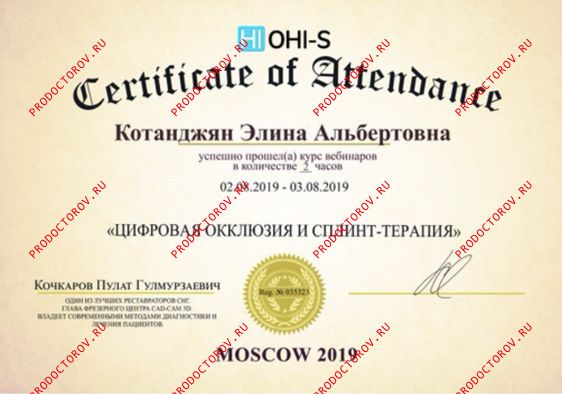 Котанджян Э. А. рекомендует как стоматолога-ортопеда (23.07.2021)