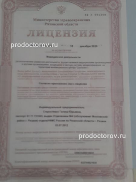 В штат медицинского центра «Пульс» входят сертифицированные специалисты, обладающие высокими профессиональными навыками. Они реализуют принцип индивидуального подхода к каждому пациенту. Деятельность учреждения лицензирована. Разрешительные документы были выданы ему 15 декабря 2020 года.
