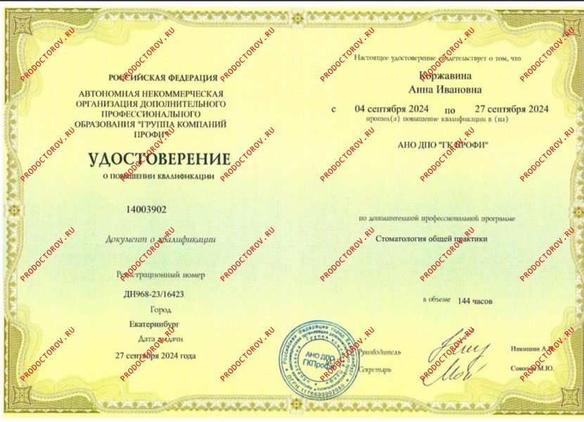 Обратилась в клинику "Демократ" по поводу имплантации. Перед операцией нужно было провести санацию полости рта. Для терапевтического лечения записалась к Коржавиной Анне Ивановне. Доктор сделала профессиональную гигиену полости рта, вылечила весь кариес​. Мне очень очень понравилась Анна Ивановна как человек и как специалист. Приемы были безболезненные и очень комфортные. Анна Ивановна подробно объясняла каждый этап процедуры, помогла подобрать индивидуальные средства гигиены для полости рта, рассказала и показала, как правильно ухаживать за зубками дома. Ответила на все мои вопросы. Прекрасный специалист, знающий свое дело!