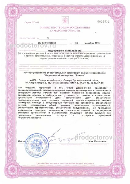 Стоматология «Реавиз» на Стара-Загора, Самара: 13 врачей, 416 отзывов о клинике и ее врачах, цены от 54 до 1460 руб., запись на приём +7 846 233-51-18, официальный сайт, адрес - Самара, ул. Стара-Загора, д. 85.