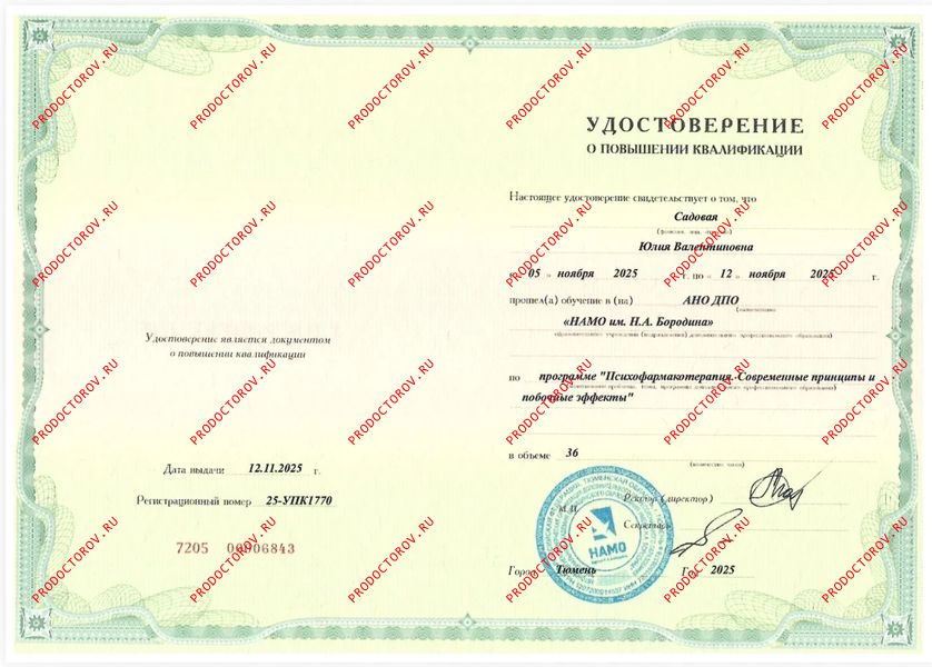 Садовая Юлия Валентиновна, Саратов: психиатр, 7 отзывов пациентов, места работы, стаж 2 года, запись на приём ☎ +7 845 239-89-81.